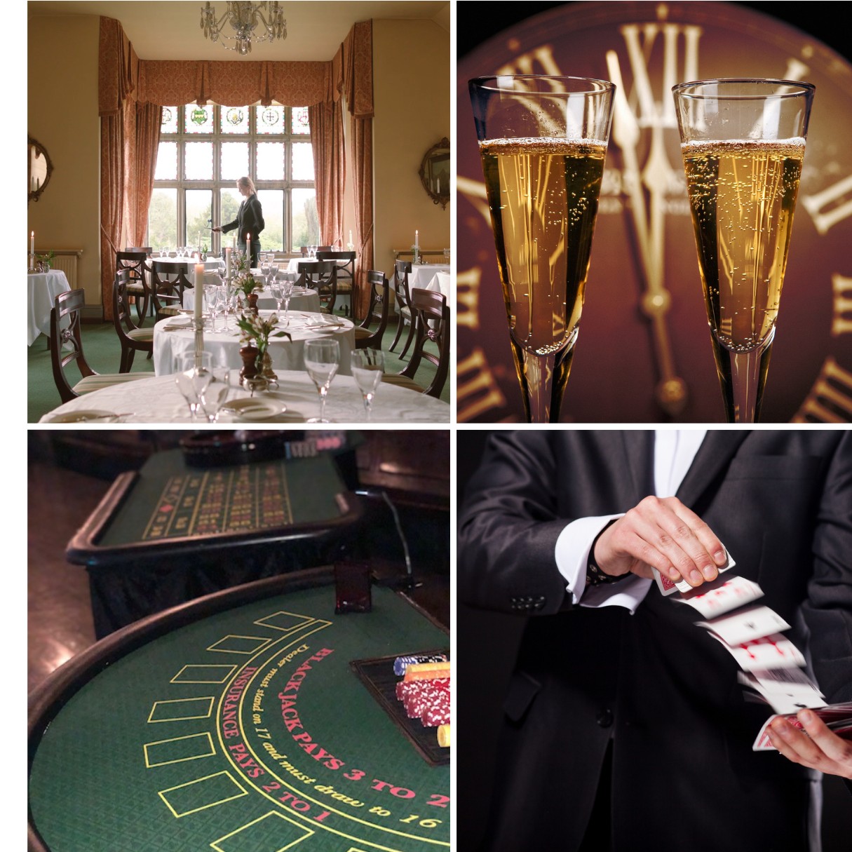 Arrive at 7:30pm for a Champagne reception with entertainment from Nick Barnes, professional Magician, followed by fireworks and a delicious five-course dinner with selected wines. Afterwards, join in the fun and try your hand at Black Jack and the Roulette table - with prizes for the winners. Tickets can be purchased online or by phoning Reception on 01492 584466.